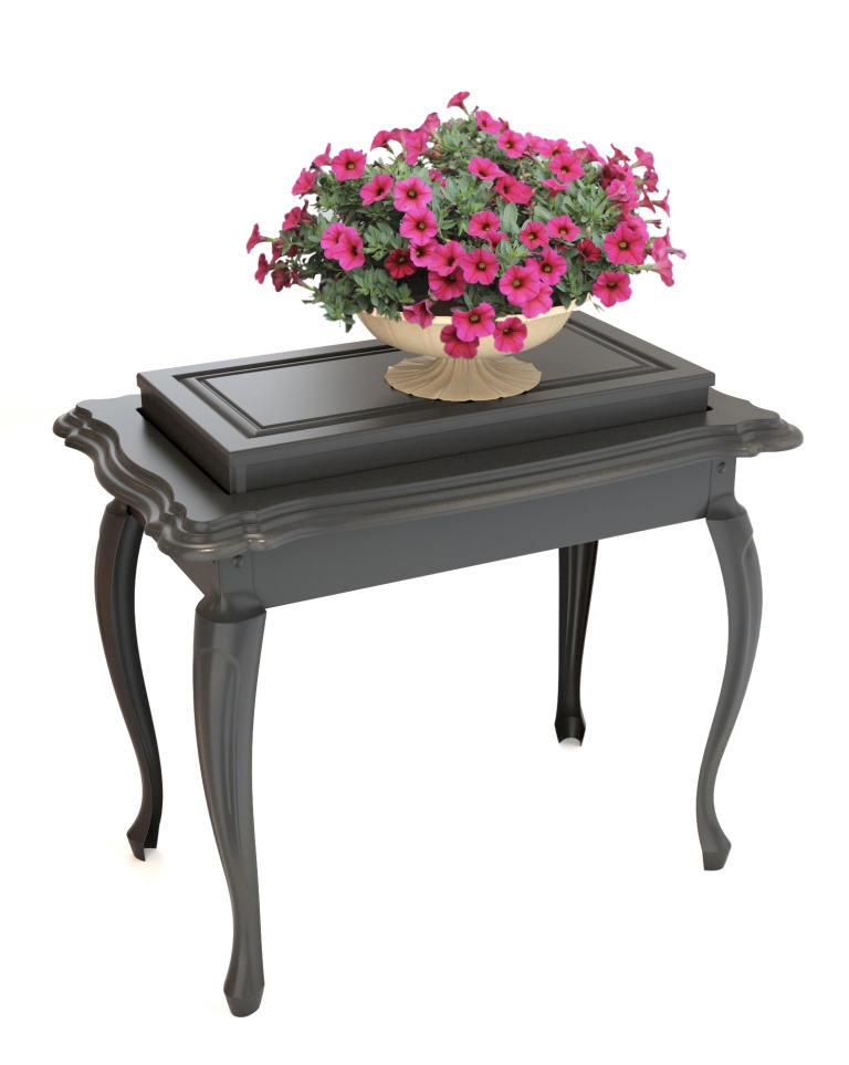 Жесткие фасонные ножки и коробчатая конструкция выдерживают статическую нагрузку до 100 килограммов. В период «простоя» можно использовать как садовую жардиньерку. Жардиньерка – это изящный столик-подставка для горшков с цветами.