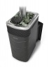 Увеличенная и усиленная двойным сварным швом закрытая первичная каменка обладает достаточной теплоемкостью для частых интенсивных подач воды.В конструкции заливной воронки использован клапан мотылькового типа, который максимально быстро пропускает порцию воды в объем первичной каменки, и еще быстрее запирается после этого. Благодаря этому практически исключен выброс пара в зоне клапана, а вся поданная вода гарантированно превращается в легкий пар.