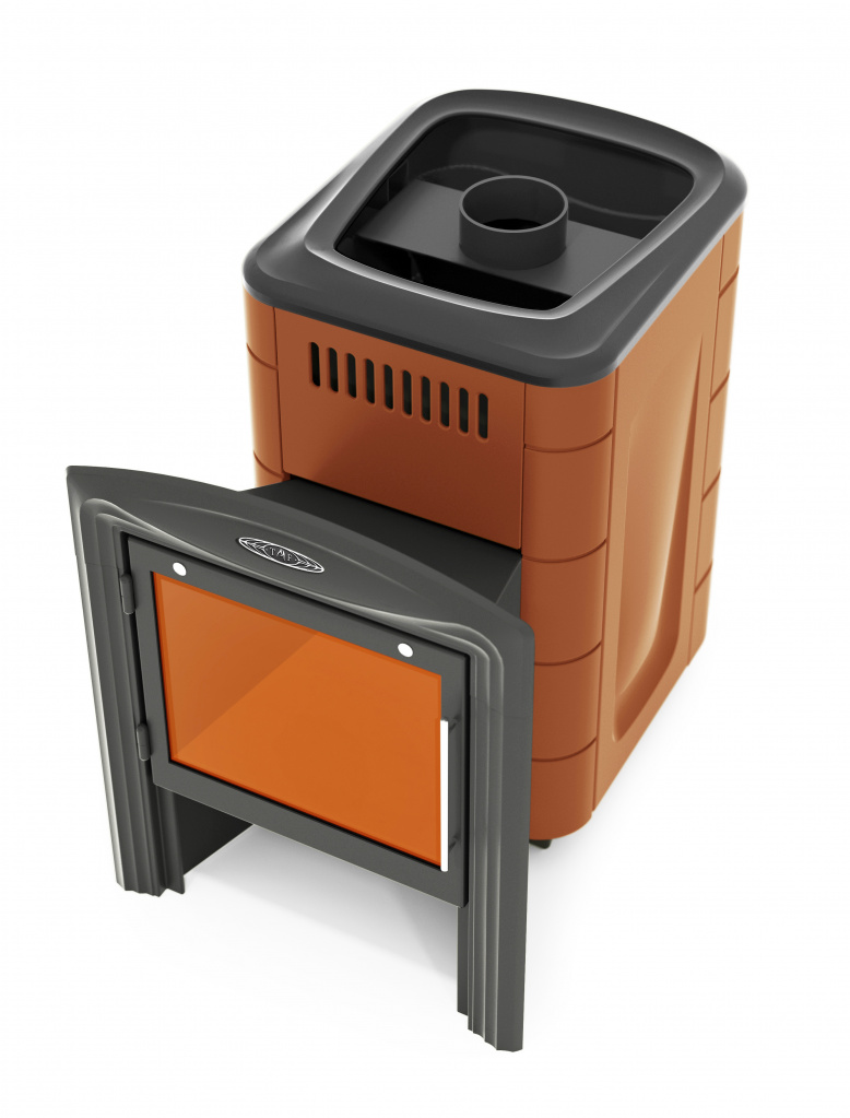 -  Широкий верхний наклонный и вертикальный нижний люк стали большими и прямоугольными, с удобными дверцами для лёгкой загрузки дров, угля и очистки колосника;