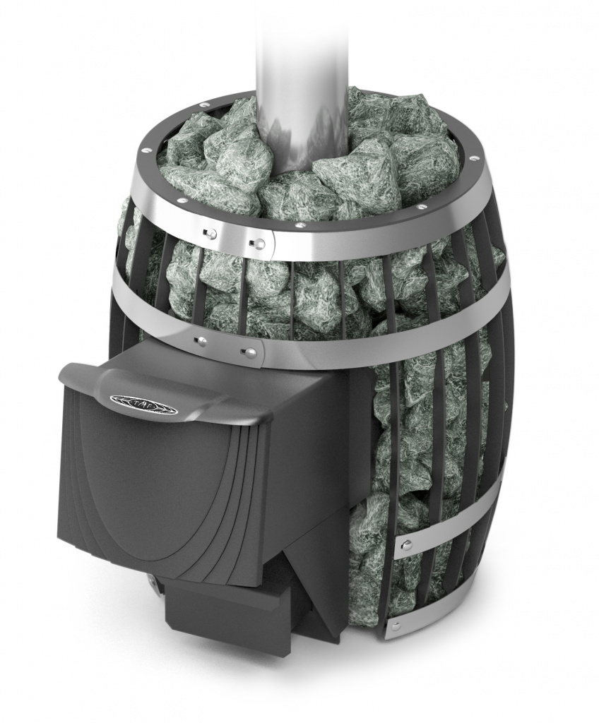 - печь «Вариата Баррель» лишена таких существенных недостатков печей-сеток, как неуправляемая воздушная конвекция и низкая температура камней из-за охлаждения их воздухом. Естественная конвекция в печи сеточного типа сильно зависит от плотности укладки камней в сетке и их размера, и конечно же, конвекция в них гораздо меньше, чем в традиционных печах с большим по площади конвекционным кожухом. Оригинальный наружный кожух печи «Вариата Баррель», как раз и защищает камни внутри бочки от их охлаждения;